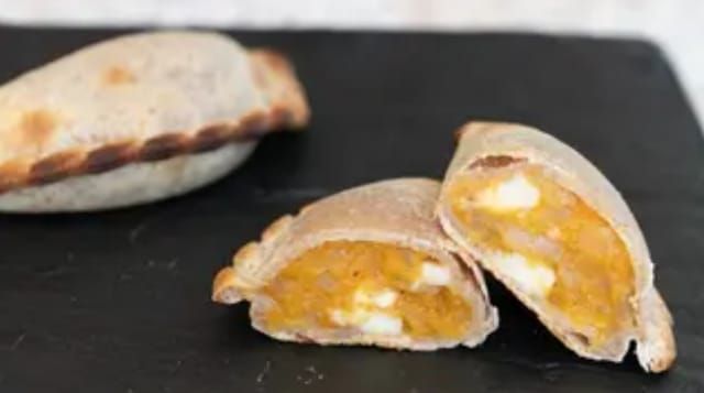 Empanada tapa de masa integral, calabaza, mozzarella vegana.