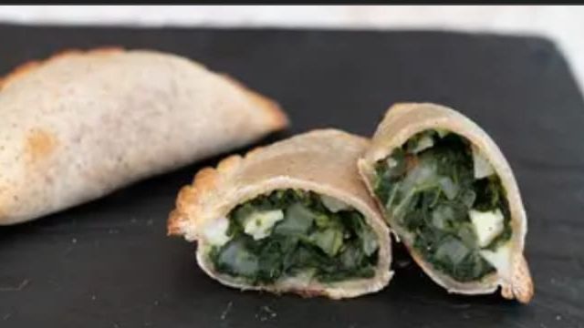 Empanada tapa de masa integral, espinaca, cebolla, morrón, mozzarella felices las vacas y barbacoa.